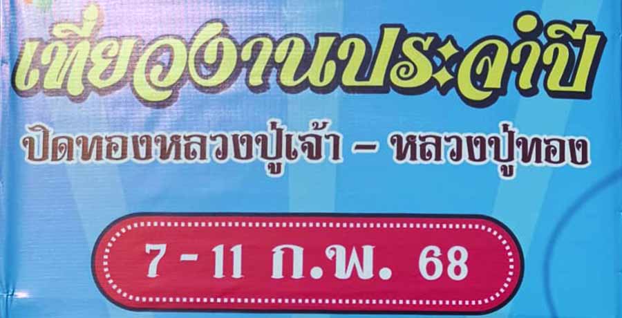 ขอเชิญร่วมทำบุญ เวียนเทียน เที่ยวงานประจำปี ปิดทองหลวงปู่เจ้า – หลวงปู่ทอง ขอเชิญร่วมทำบุญ เวียนเทียน เที่ยวงานประจำปี ปิดทองหลวงปู่เจ้า – หลวงปู่ทอง Published February 1, 2025 อ่านต่อ…ขอเชิญร่วมทำบุญ เวียนเทียน เที่ยวงานประจำปี ปิดทองหลวงปู่เจ้า – หลวงปู่ทอง